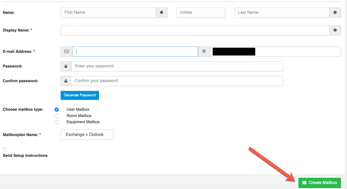 Finally, fill in all of the information and confirm the creation of the mailbox.